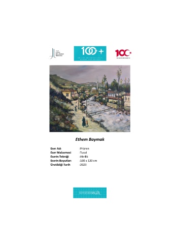Ethem Baymak Eser Adı :Prizren Eser Malzemesi :Tuval Eserin Tekniği :Akrilik Eserin Boyutları :100 x 120 cm Üretildiği Tarih :2023