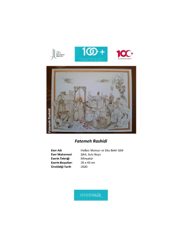 Fatemeh Rashidi Eser Adı :Hallacı Mansur ve Ebu Bekir Şibli Eser Malzemesi :Şibli, Sulu Boya Eserin Tekniği :Minyatür Eserin Boyutları :35 x 43 cm Üretildiği Tarih :2020