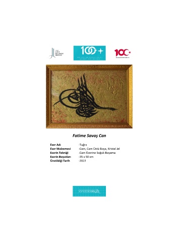Fatime Savaş Can Eser Adı :Tuğra Eser Malzemesi :Cam, Cam Üstü Boya, Kristal Jel Eserin Tekniği :Cam Üzerine Soğuk Boyama Eserin Boyutları :35 x 50 cm Üretildiği Tarih :2022