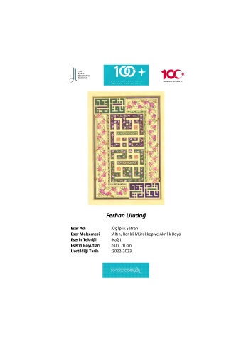 Ferhan Uludağ Eser Adı :Üç İplik Safran Eser Malzemesi :Altın, Renkli Mürekkep ve Akrilik Boya Eserin Tekniği :Kağıt Eserin Boyutları :50 x 70 cm Üretildiği Tarih :2022-2023