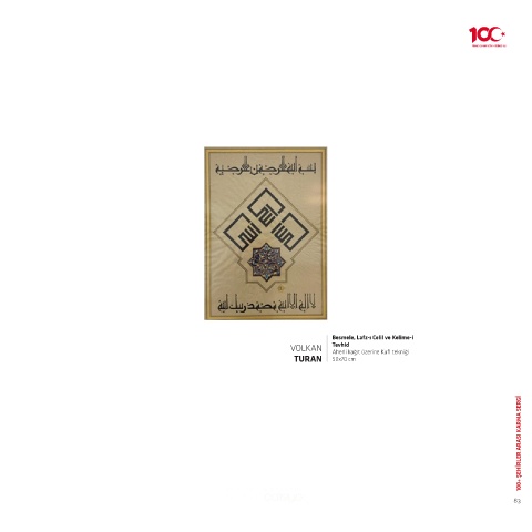 Besmele, Lafz-ı Celil ve Kelime-i VOLKAN Tevhid Aherli kağıt üzerine Kufi tekniği TURAN 50x70 cm 100+ ŞEHİRLER ARASI KARMA SERGİ 83