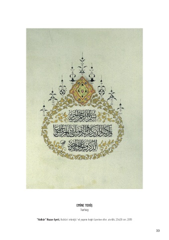 EMİNE TEKİŞ Turkey “Halkâr” Nazar Ayeti, Halkâri tekniği / el yapımı kağıt üzerine altın, akrilik, 20x28 cm, 2019 33