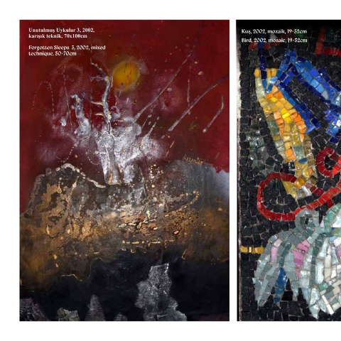 Unutulmuş Uykular 3, 2002,                                                    Kuş, 2002, mozaik, 19x52cm                                                        Akdeniz, 2002, karışık mozaik,