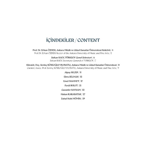 subject to prior written permission. Küratör, Doç. Sevinç KÖSEOĞLU ULUBATLI, Ankara Müzik ve Güzel Sanatlar Üniversitesi / 8