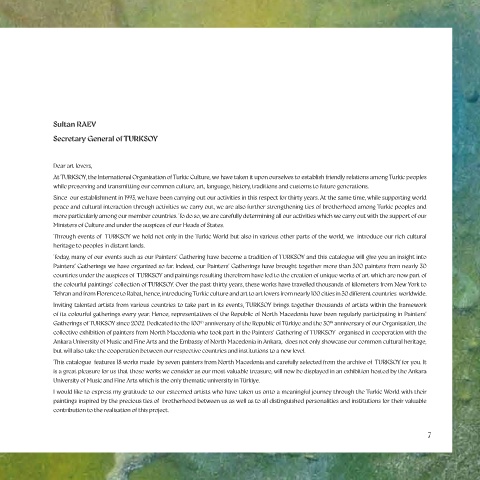 Elinizde bulunan katalogda TÜRKSOY resim arşivinden Kuzey Makedonyalı yedi ressamın sizler için özenle seçtiğimiz 18 eserlik bir bölümü yer alıyor. but will also take the cooperation between our respective countries and institutions to a new level.