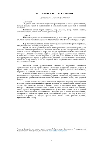 культурой узбекского народа. Выражается быт, традиции и обычаи женщин-вышивальщиц,