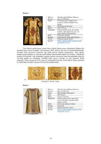 Ortodoks kilise giysisi örneğidir. Çatma kumaşı XVII. yüzyılın ilk yarısı ile tarihlendirilmektedir.