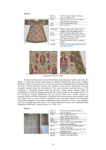örneğidir. Kemha ve saten kumaş XVI. yüzyılın ikinci yarısı ile tarihlendirilmektedir. Şimdiye kadar