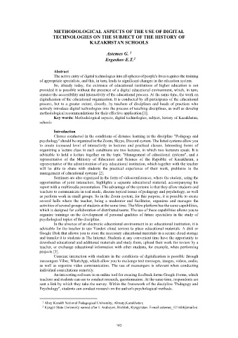 Key words: Methodological aspects, digital technologies, subject, history of Kazakhstan,