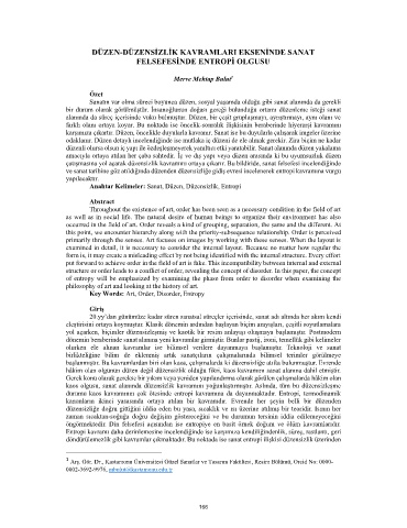 DÜZEN-DÜZENSİZLİK KAVRAMLARI EKSENİNDE SANAT