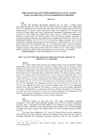 THE VALUE OF WRITTEN QURANS IN TIRE NECIP PASHA LIBRARY IN