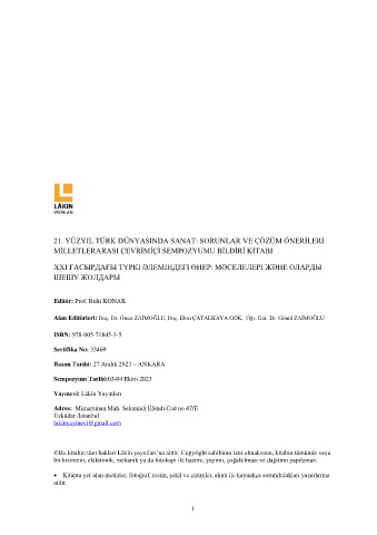 Alan Editörleri: Doç. Dr. Ömer ZAİMOĞLU, Doç. Ebru ÇATALKAYA GÖK, Öğr. Gör. Dr. Gönül ZAİMOĞLU