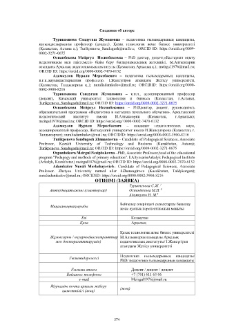 (Қазақстан, Астана қ.); Turikpenova_Sandugash@mail.ru; ORCID ID: https://orcid.org/0009-