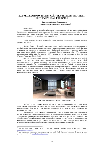 Түйін сөздер: Хай-тек, ерекшелік, стиль, жоғары технология, техника, талғам,