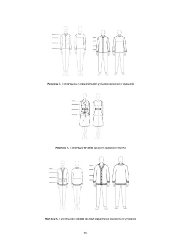 Рисунок 3. Технические эскизы базовых рубашек женской и мужской Рисунок 4. Технический эскиз базового женского тренча Рисунок 5. Технические эскизы базовых кардиганов женского и мужского 313
