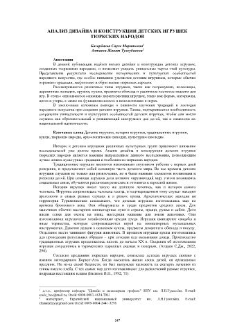 игрушек сохранились в туркменских народных сказках и поверьях. (Атдаев С.Дж., 2022,