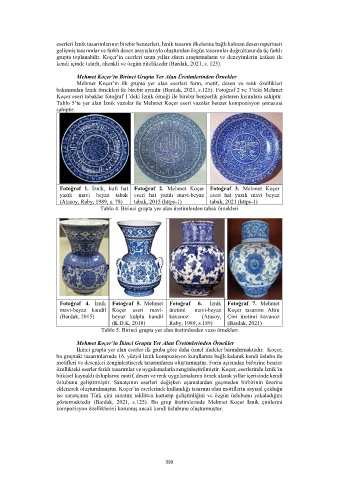Tablo 5’te yer alan İznik vazolar ile Mehmet Koçer eseri vazolar benzer kompozisyon şemasına