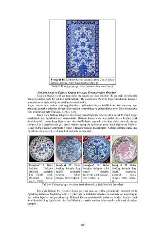 Tablo 9. Üçüncü grupta yer alan üretimlerden kuş figürlü tabak örnekleri