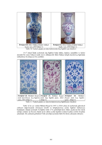 Tablo 10. Üçüncü grupta yer alan üretimlerden kuş figürlü vazo örnekleri