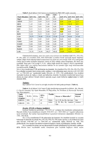 Tablo 5. Şeyh Şabani Veli Camisi sıva örneklerinin PED-XRF analiz sonuçları