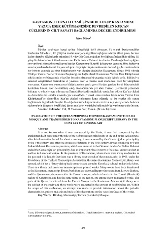 Anahtar Kelimeler: Cilt, El Yazması Eser, Turnalı (Bereketli) Cami.