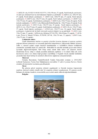 yazılmıştır), 4 adedi de tek tek farklı süslemeli eserlerin bilgileri ise şu şekildedir: 50 (4283-1.cüz,