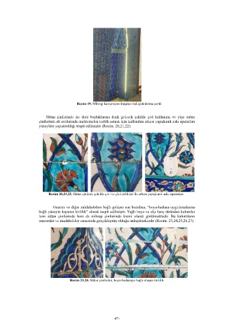 hem sütun çinilerinde hem de mihrap çinilerinde kısmi olarak görülmektedir. Bu kalıntıların