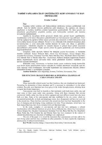 TARİHİ YAPILARDA İŞLEV DEĞİŞİKLİĞİ: KERVANSARAY VE HAN