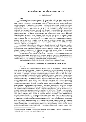 CULTURAL HERİTAGE: FROM THE PAST TO THE FUTURE