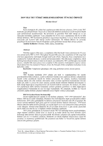 2019 YILI TRT TÜRKÜ DERLEMELERİNDE TÜNCELİ ÖRNEĞİ