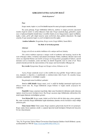 Anahtar kelimeler: Kırgızistan, Kırgız sanatı, Kırgız kültürü, Sanatı Etkisi