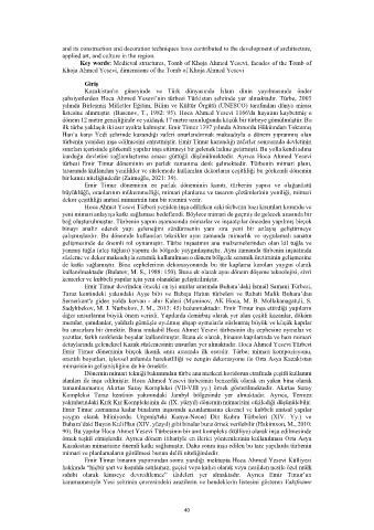 Sadykbekov, M. J. Nurbekov, J. M., 2013: 45) bulunmaktadır. Emir Timur inşa ettirdiği yapıların
